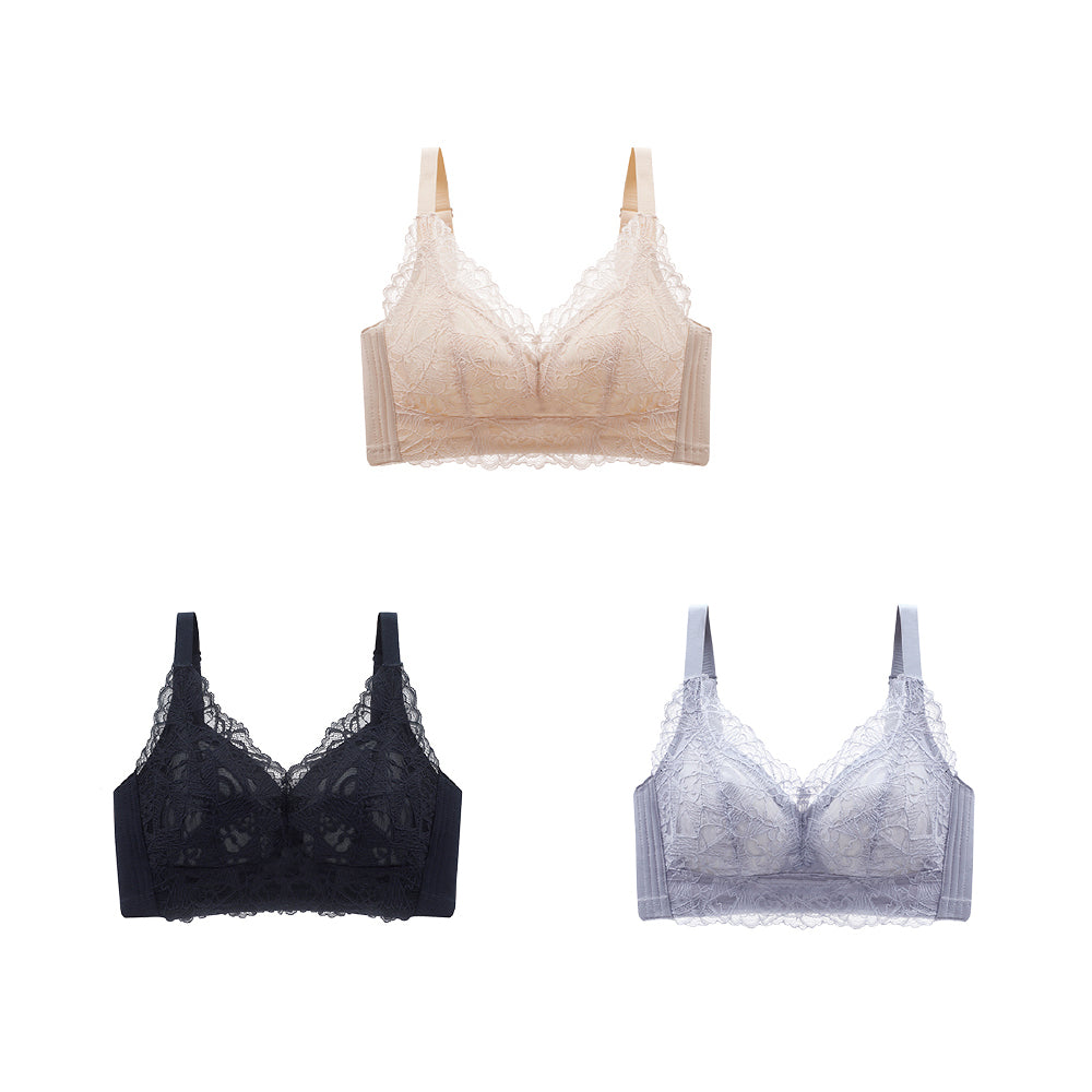 ・素材構成:メイン:ナイロン 90%, ポリウレタン 10% 脇裏:ナイロン 80%, ポリウレタン 20%・取り扱い案内:洗濯機洗い・クロージャータイプ:4列4段ホック・アンダーワイヤーのタイプ:ノンワイヤー